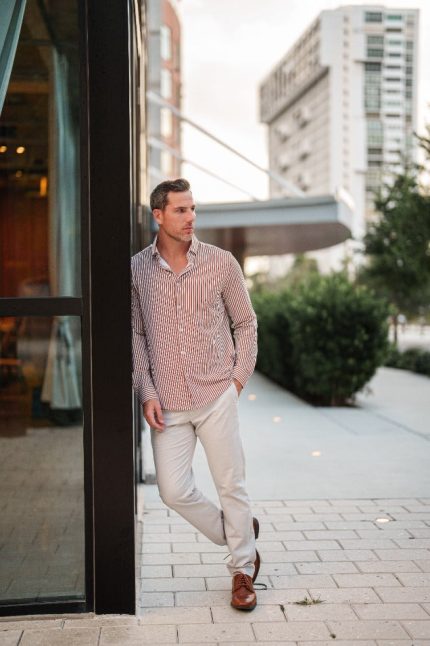 APEX - Dark Orange Bengal Stripe Long Sleeve Shirt $138.00
