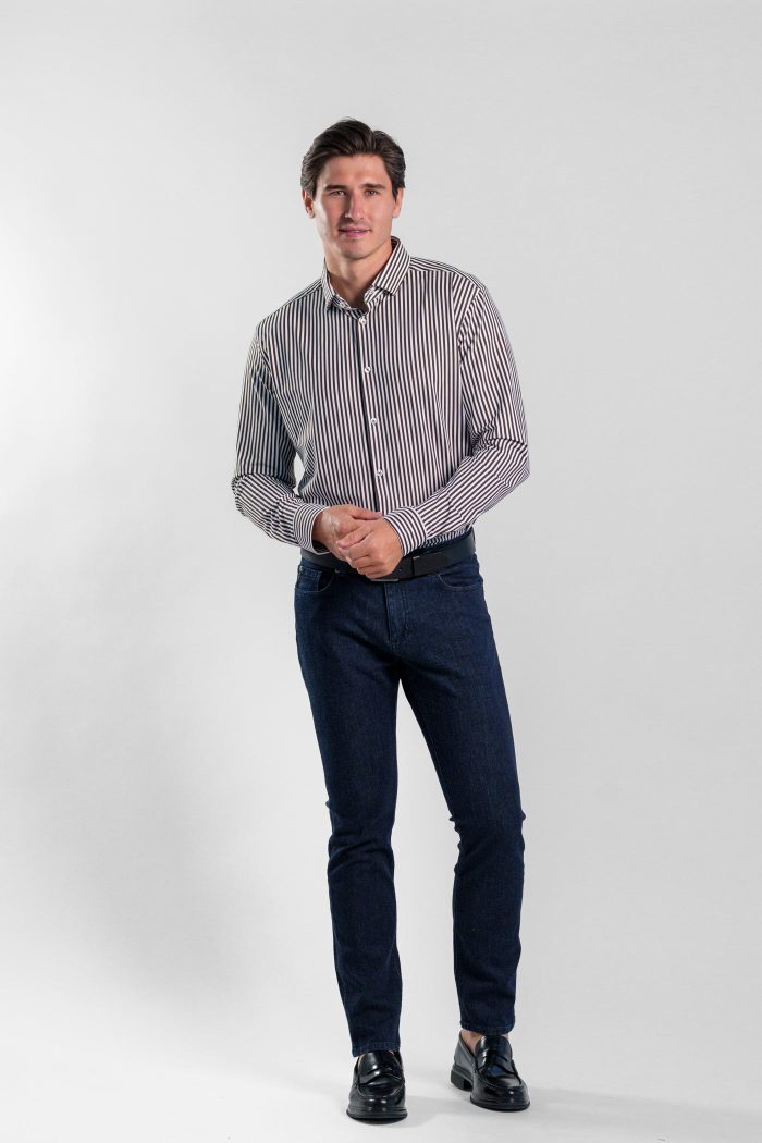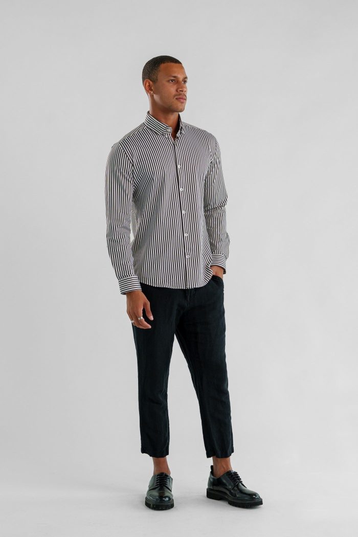 APEX – Dark Brown Bengal Stripe Long Sleeve Shirt