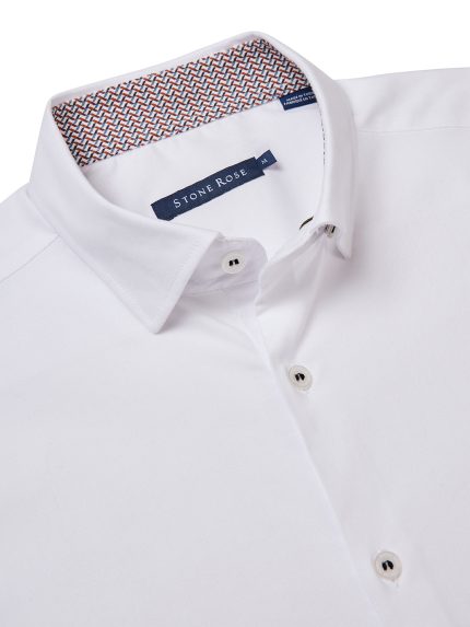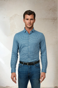 The APEX – Medium Blue Micro Houndstooth Shirt from our Apex Collection features a clean, structured profile with a soft hand-feel, ideal for everyday wear and versatility across seasons.