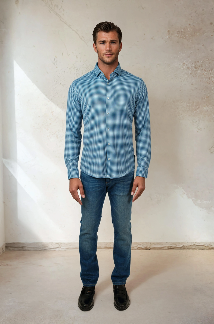 Home Long Sleeve Shirts APEX – Medium Blue Micro Houndstooth Shirt