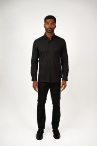 The NOVA – Black Legacy Shirt from our Nova Collection is designed with an elegant drape and a smooth, peachy finish. Its clean silhouette and modern feel make it a versatile option for both casual and elevated looks.