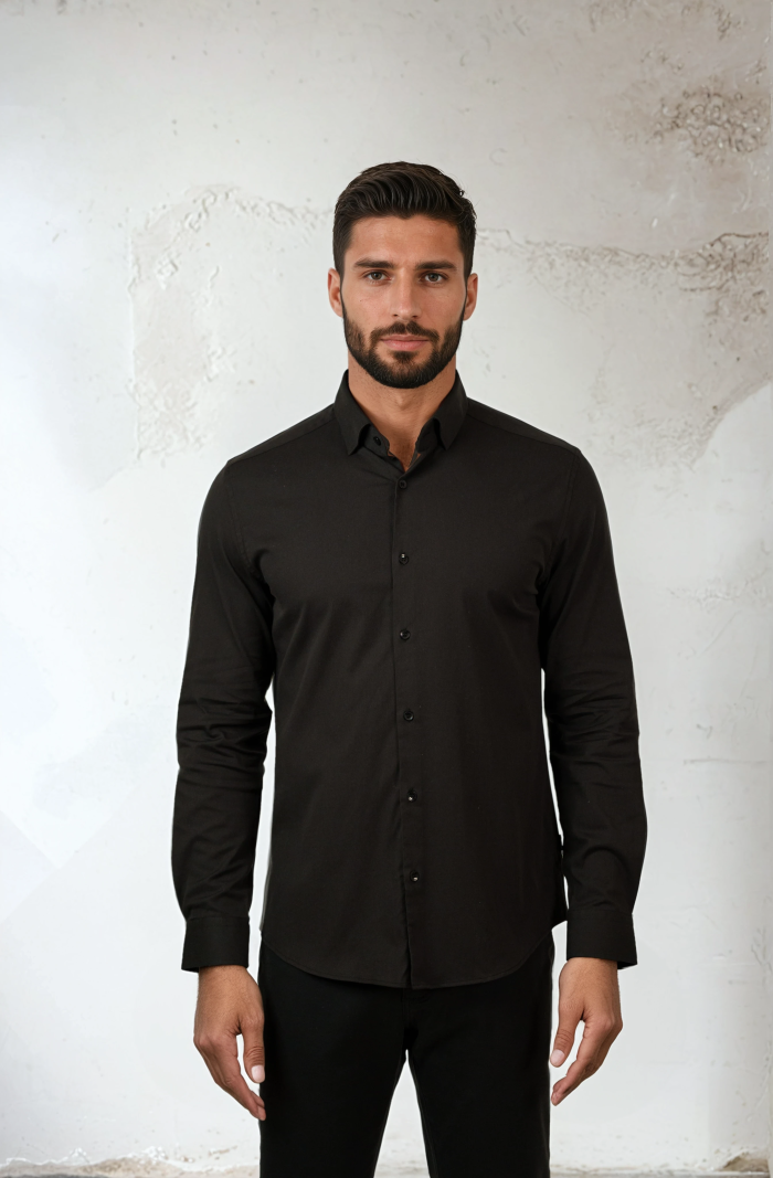 The NOVA – Black Legacy Shirt from our Nova Collection is designed with an elegant drape and a smooth, peachy finish. Its clean silhouette and modern feel make it a versatile option for both casual and elevated looks.