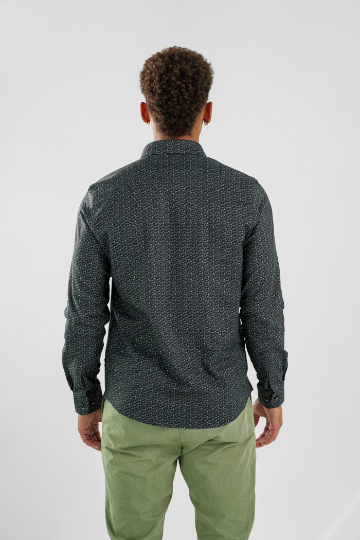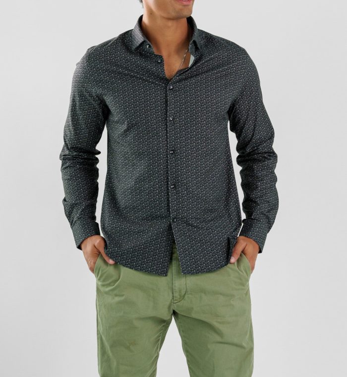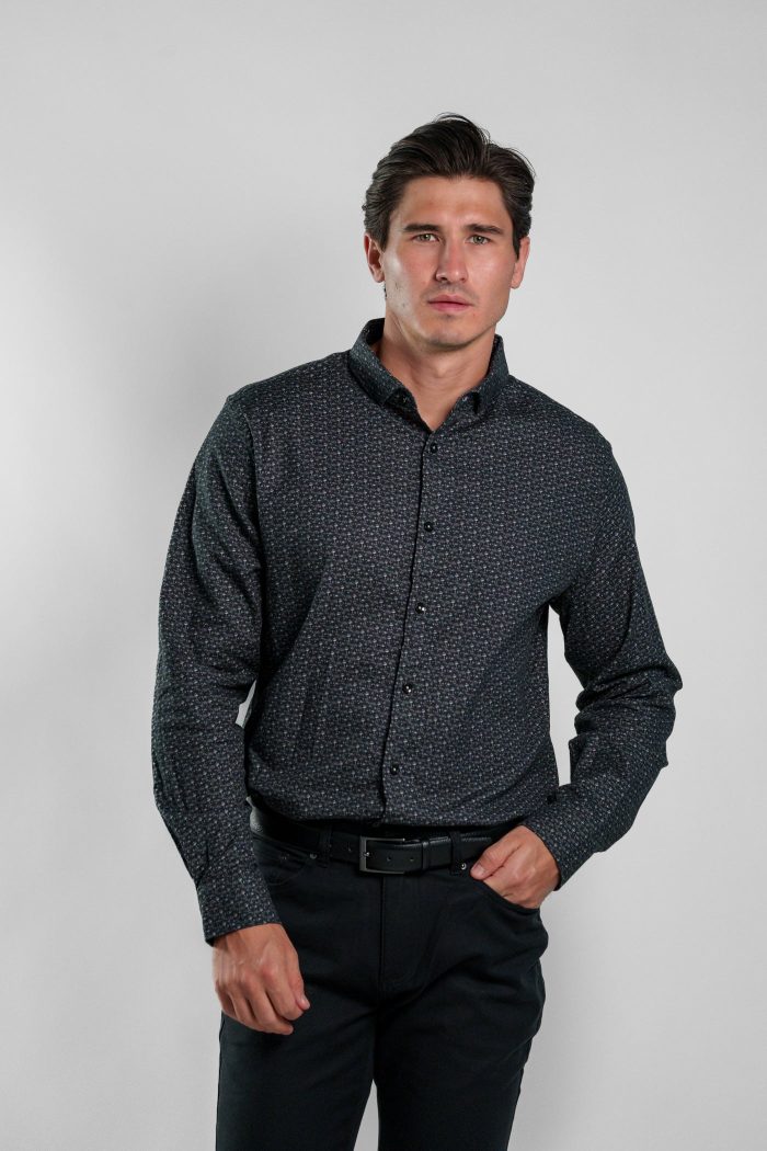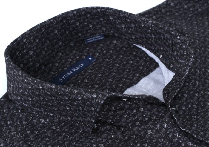 Eco-FriendlyExperience the bold and sleek design of our NEW NOVA Collection with this unique black mushroom print shirt. Stand out with its eye-catching geometric pattern and make a statement wherever you go. A must-have for any fashion-forward individual.This season, discover our unique collection of twill shirts made with a special blend of cotton and Tencel. Tencel, a fiber derived from eucalyptus trees, adds a touch of breathability and moisture-wicking to the soft, flowy fabric – perfect for all seasons. Each shirt boasts distinctive accents and playful designs carefully crafted in-house.ContentElevate your wardrobe with this new Eco Blend 70% Cotton 27% Tencel and 3% Elastane Printed Long Sleeve Cotton Tencel Twill Shirt from Stone Rose, combining style, comfort, and sustainability.Care