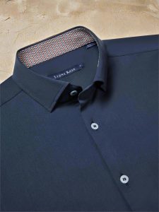 The NOVA – Dark Navy Legacy Shirt from our Nova Collection is designed with an elegant drape and a smooth, peachy finish. Its clean silhouette and modern feel make it a versatile option for both casual and elevated looks.