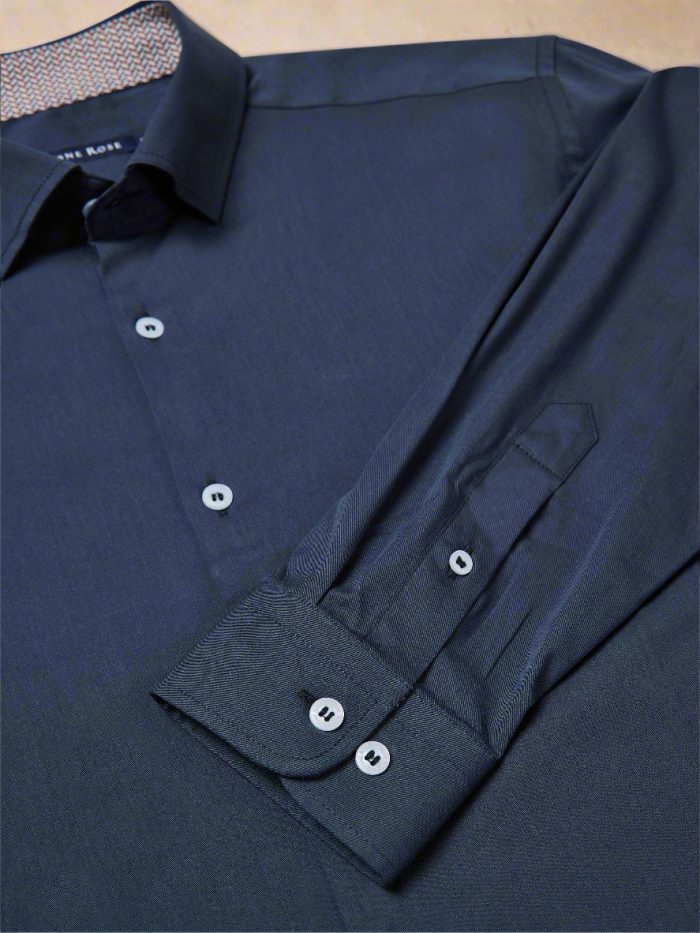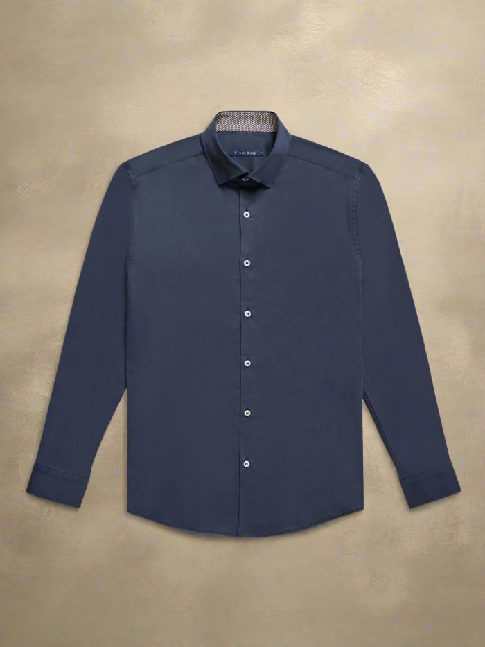 The NOVA – Dark Navy Legacy Shirt from our Nova Collection is designed with an elegant drape and a smooth, peachy finish. Its clean silhouette and modern feel make it a versatile option for both casual and elevated looks.