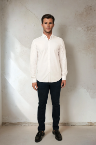 The NOVA – White Legacy Shirt from our Nova Collection is designed with an elegant drape and a smooth, peachy finish. Its clean silhouette and modern feel make it a versatile option for both casual and elevated looks.