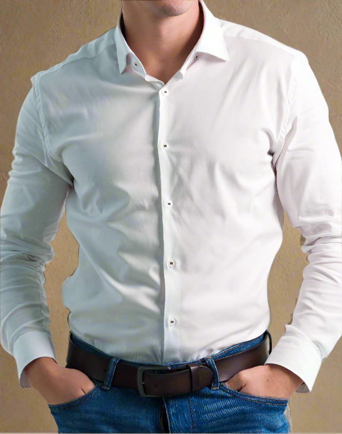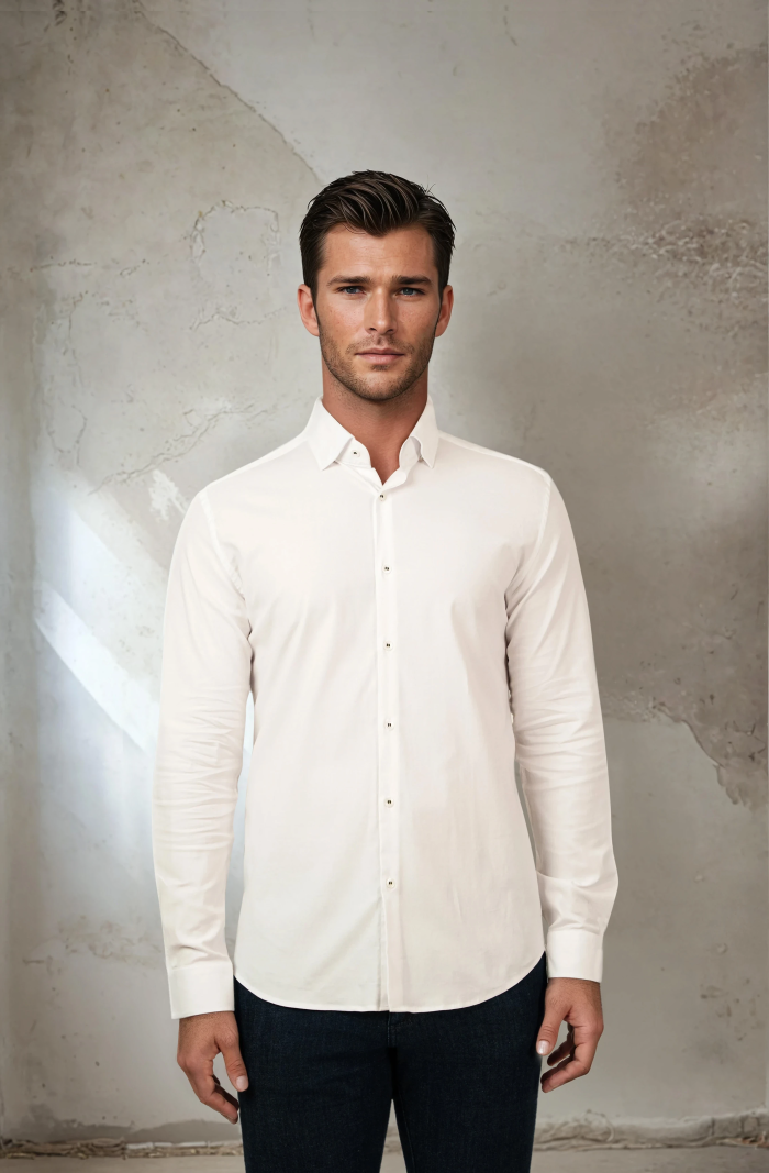 The NOVA – White Legacy Shirt from our Nova Collection is designed with an elegant drape and a smooth, peachy finish. Its clean silhouette and modern feel make it a versatile option for both casual and elevated looks.